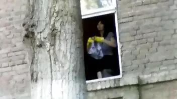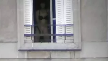 جوجه بلند و باریک نشان داد یک بازی با بیدمشک او سکس فول اچ دی در بالکن